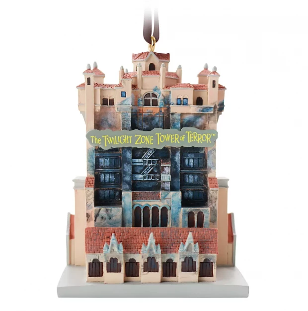 Hollywood Studios The Twilight Zone Tower of Terror facade has been detailed in miniature for a holiday ornament direct from Walt Disney World.