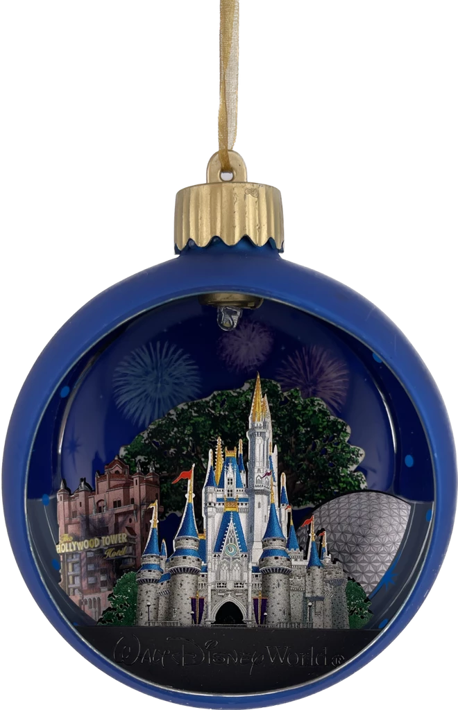 Set inside a diorama display, features All 4 Park Icons with fireworks in the background. Turn the knob on the top and light it up.